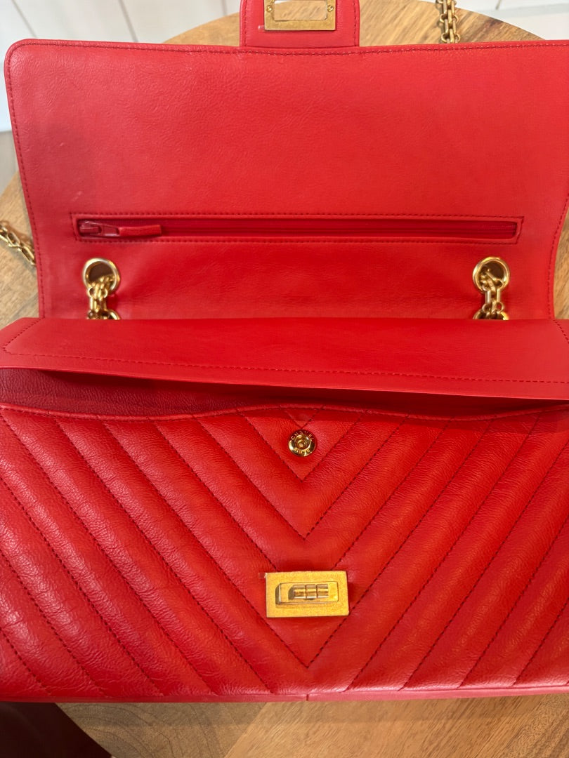 Chanel 2.55 Double Flap Reissue – Red Chevron | Authentic Luxury at Posh Purse Co.